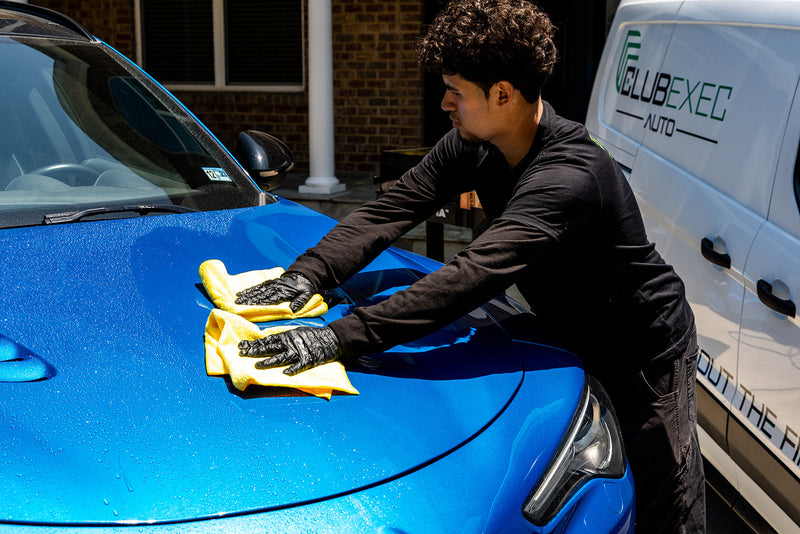 Our Essential Detail includes both interior and exterior care: a hand wash, ceramic wax, wheel & tire detail, interior steaming, leather treatment, and more - far beyond a quick wash.