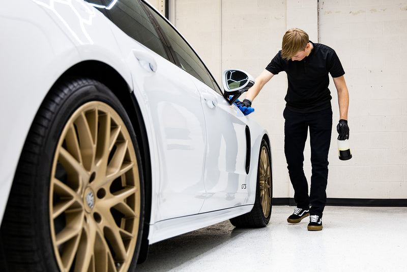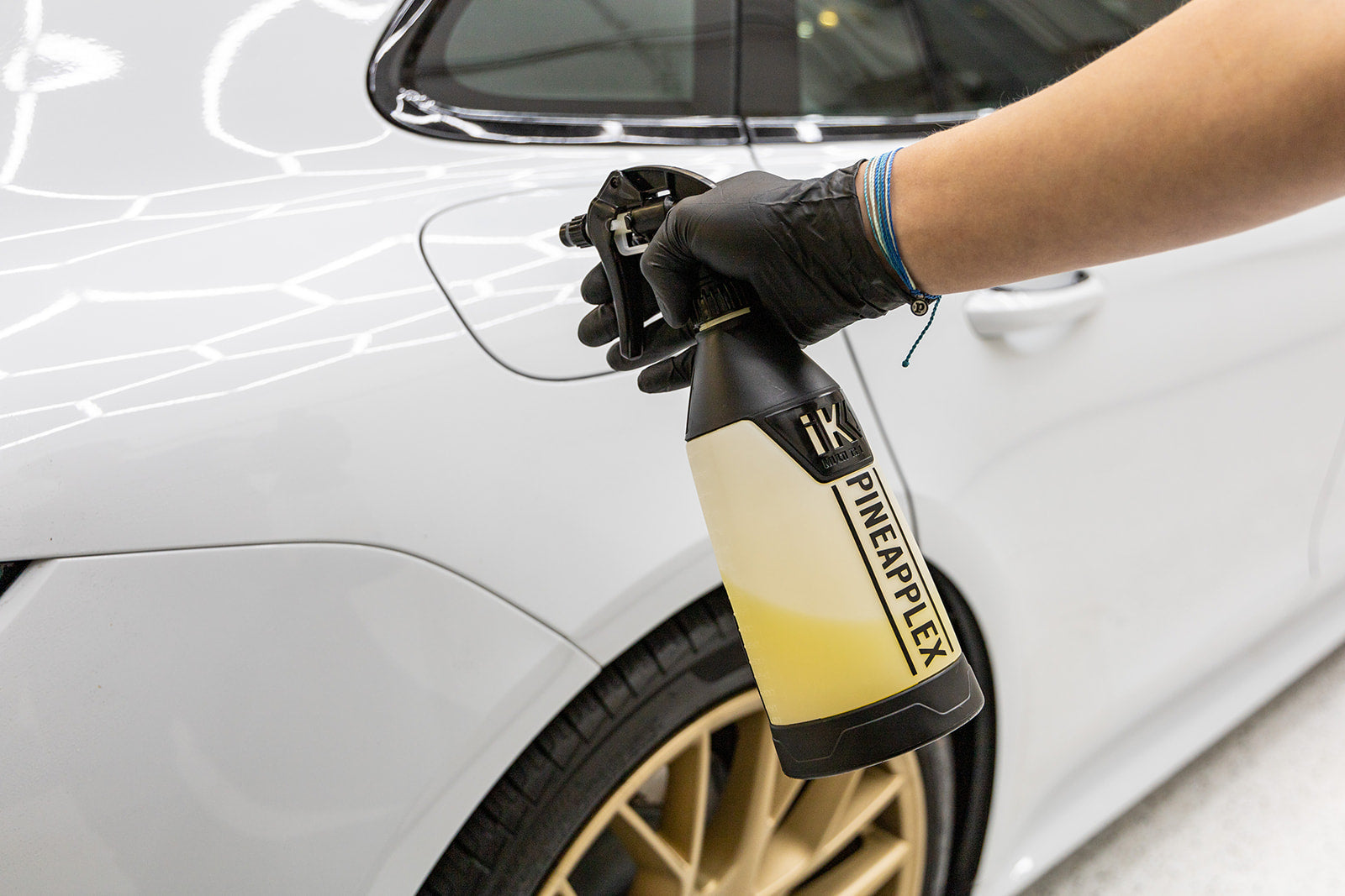 Our Essential Detail includes both interior and exterior care: a hand wash, ceramic wax, wheel & tire detail, interior steaming, leather treatment, and more - far beyond a quick wash.